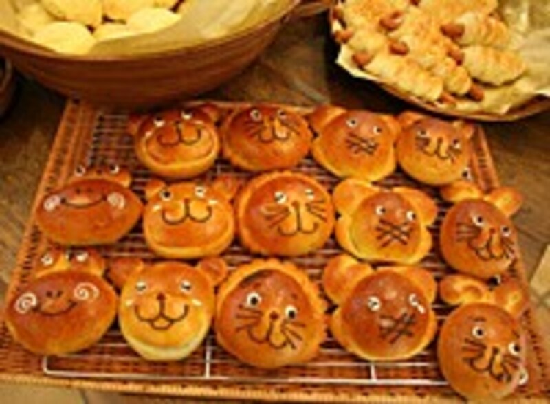 ギフト商品やおなじみの菓子パンもAmandineはギフトショップでもあります。名刺の形のクッキーなど珍しいものから何種類もあるマカロン、コンフィチュール、この時期はハロウィンのカボチャのお菓子も揃っています。お土産になりそうなかわいらしい動物パンもあります。
