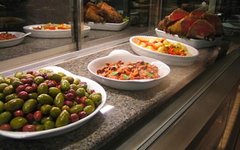 ![]() | パンやワインに合うお惣菜が並ぶショウケース |