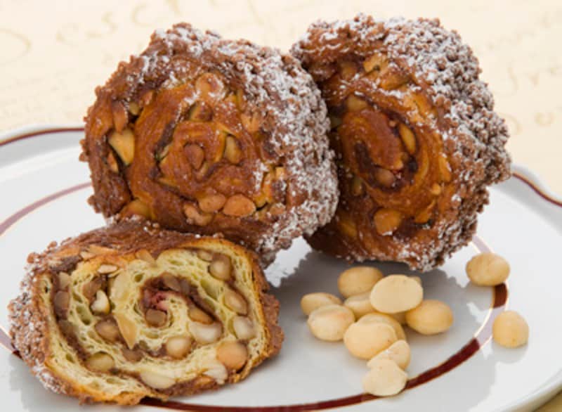 審査員長 アンドリュー・ヒープ オーストラリア・マカダミア協会 ゼネラルマネージャー 製菓部門 中村 勇 東京製菓学校 理事・副校長 小山 進 パティシェ エス・コヤマ オーナーシェフ 宮本 雅巳 コンツェルト オーナーシェフ 樽井 雅美 厳選パティシエじゅずつなぎ 主宰 製パン部門 金林 達郎 ジャパンプロフェッショナルベーカーズ友の会 幹事 西川 功晃 ブランジェリー コム・シノワ ベーカーシェフ 玉木 潤 たま木亭 オーナーシェフ 清水 美穂子 オールアバウト パンガイド それでは製パン部門受賞作品をご紹介しましょう。 金賞 「バジル香るマカダミア・カカオ」■バジル香るマカダミア・カカオドンク東京 新井蔵史さん