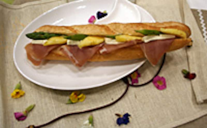 ![]() | 山田雅美さん(愛知県) ■生ハムとパイナップルのカスクートサンド 生ハム、パイナップル、クリームチーズ、アスパラガスの細長いサンド |