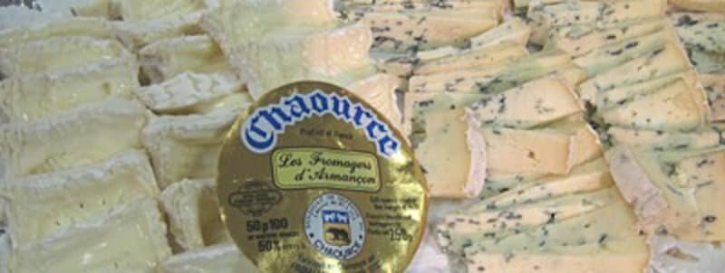| 軽い酸味のあるきめ細かなシャウルスAOC(左)、刺激がなくマイルドなブルーチーズ、フルムダンベールAOC(右) |