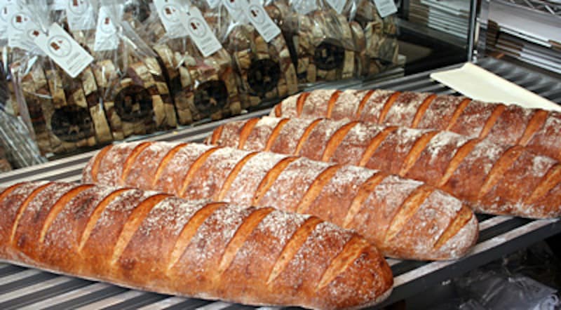 | 岡山のカフェに卸しているパン。奥は発送を待つ四季のカンパーニュ。 |