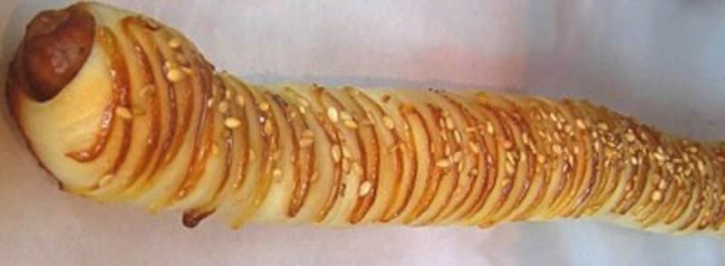 面白いパンもあります。50センチ近くもある「天然腸詰めポークウィンナー」はパン生地のひもをウィンナーに巻きつけて焼いているので、中に空洞ができず、食べているうちにウィンナーがはずれてしまうこともないのだとか。さめても美味しいので、カットしたらお弁当にも向くそうです。
