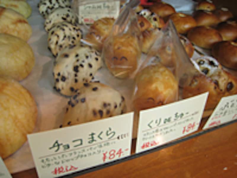 | カスタードクリーム、粒あんは厨房で炊いている | チョコまくら、くりDEちゅー(各84円)は子供の好きなパン |