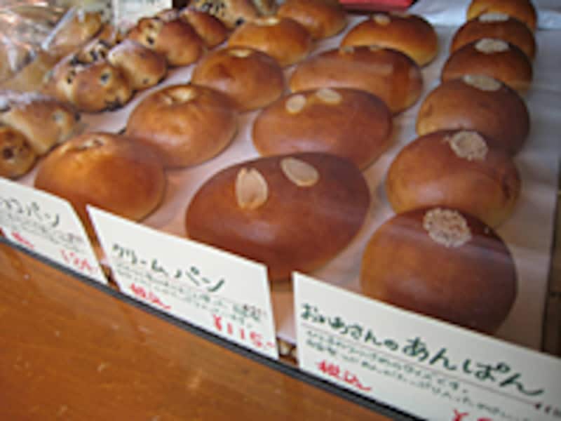 このお店には 小さなサイズのパンがいろいろあります。お年寄りや小さな子供のお客さんが多いので、おいしく食べきってもらえるように。子供のサンドイッチのお弁当に使える丸パンも何種類かあります。食パン生地をふんわり丸めた「あやちゃんのほっぺ」、全粒粉30%の生地の「全粒ロール」、ほのかに甘い菓子パン生地を小さく丸めたプチパンなど、どれもこれもやさしくて温かい。おかあさんの味がするパンというのがあるなら、きっとこんな味です。ちなみに”あやちゃん”とは、5歳のお嬢さんの名前です。
