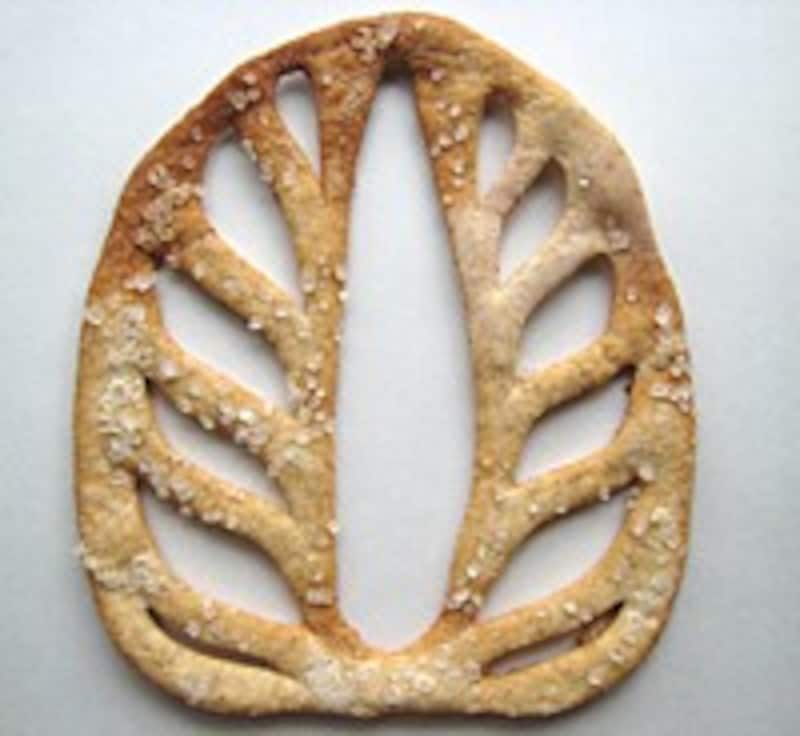 渡邉さんは全粒パンの生地が好きで、いろいろなパンに仕上げていますが、このクレセントロールもそうです。「木の葉さん」というパンはザラメをつけた全粒生地の平パンで、クラッカーのような食感。形にも魅了されます。