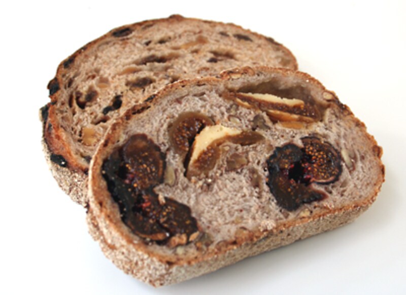 セーグル生地に甘さとコクを出すために練りこまれているのは白イチジクのペーストとぺカンナッツ。さらにこのパンには贅沢な細工を施したドライのイチジクがゴロゴロと入っています。 なんと、白イチジクにはクリームチーズ、黒イチジクにはフランボワーズのコンフィチュール(このパンに合わせて糖度高めに炊き合げた自家製)がサンドされているのです。