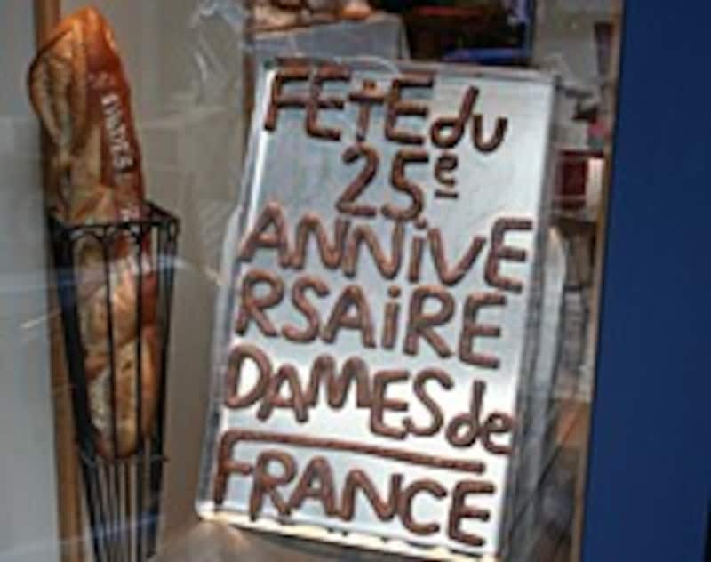 かつてこんなにたくさんの種類の「フランスパン」が並ぶ店を見たことがなかったかもしれません。昨年25周年を迎えたダム・ド・フランスは福岡は薬院大通駅に程近いスーパーマーケット、ボンラパスの一角にあるフランスパンの種類豊富なパン屋さんです。縦長のフランスパンだけでもバゲット、バタール、パリジャン、ドゥーリーブル、ペイザンの他に数種類、毎朝10時頃には、まだパチパチ言っている焼きたてのパンが立ち並びます。フランスではこれを「パンの歌」というのだそうです。