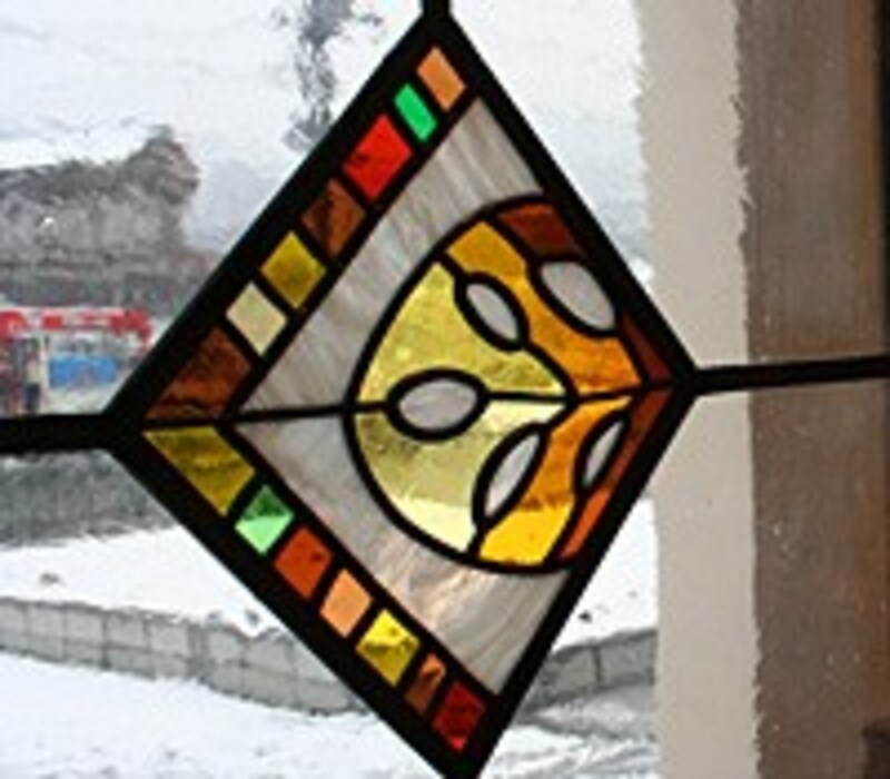 | 仁礼正男さん、久美子さん | ドアの窓にフーガスのモチーフ。 |