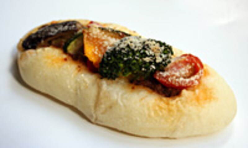 ムッシュソレイユには新鮮な野菜やフルーツを使ったパンがあります。 冬の間は信頼のおける地元の八百屋さんから仕入れるそうですが、春から秋まで週二回、長野や新潟から有機無農薬野菜が届きます。「5月にレタスなどの葉ものから始まって トマト、キュウリ、トウモロコシ、ナス、枝豆、カボチャ、ズッキーニ、パプリカ、 イチジク、リンゴ、11月の終わりの干し柿でシメです」と、竹内さん。これらはフォカッチャに乗ったり、デニッシュに入ったりします。 「野菜が届きだすと、ワクワクします。余計なものはいらないと思っているんです。新鮮な素材そのものの味をいかしたパンを提供したいですね」 そのあたり、料理人の顔が見え隠れしています。