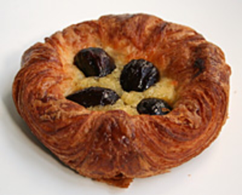 | ポム(168円)。甘酸っぱいリンゴのフィリング入り。 | マロン(189円)。渋皮栗とクレームダマンド。 |