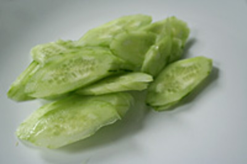 桜の花の塩漬けは通常、塩分を洗ってから使用しますが、ここでは胡瓜を漬け込むために、軽く払う程度で使っています。花もパンにはさむと綺麗で風味も濃くなりおいしいですが、その場合は塩をよく洗い落として使ってください。チーズやハムなどの素材は塩気が少ないものを選ぶことがポイントです。 野菜もいろいろアレンジして楽しんでください。