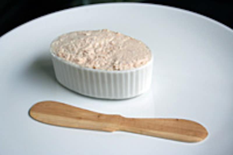 ココットに詰めたら、ポイントにケイパーの他、ディルやチャービルなどのハーブやツナと合うクルミをのせても良いでしょう。スライスしたパンと共に、数種類のペーストやジャム、チーズやハチミツなどを並べてテーブルに出すときも、ひとつ手づくりのものがあると、ぐっと楽しくなってきます。