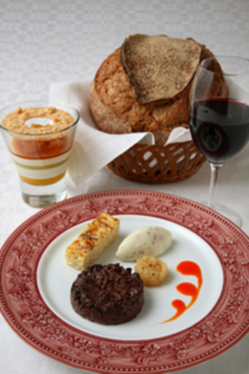 | おすすめの定番料理ブーダン ノワール、パン ド アラン・デュカス、ブランマンジェ |