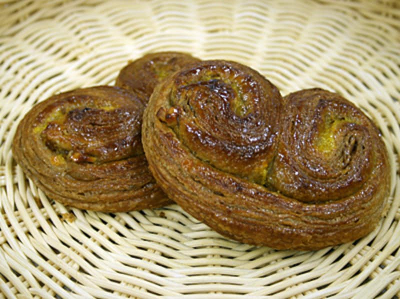 もうひとつのパルミエ型、「セーグルフィユテ」はライ麦パンにシナモン、キャトルエピス、ナツメグなどの香るエピスバターを折り込んだパンでオレンジ、クルミが入っています。ライ麦パンなど、手間隙かかるわりにお客さんに浸透していないパンは、こんなふうに食べやすい形や味つけで、親しんでもらうようにしているのです。
