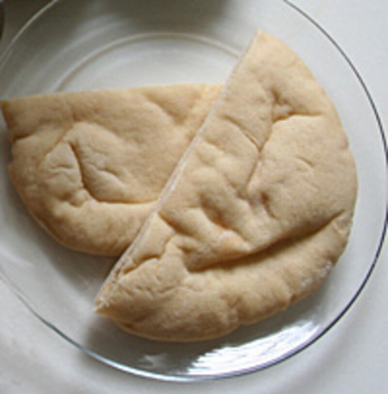 そぼろはポロポロとこぼれやすいので、パンに挟むのではなく、ポケット状になったパンに入れるのが適しています。そういうパンを総称して「ピタ」と呼んでいますが、ここでは紀ノ国屋の「ポケットブレッド」を使いました。紀ノ国屋にはこれより大きな「シャミー」、ふんわり厚いタイプの「ピタ」(プレーン、ホールウィート、チーズ)など、中が空洞になったパンがいくつかあります。