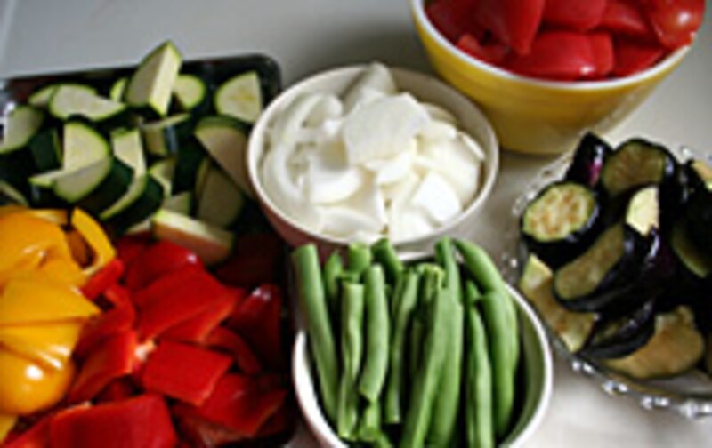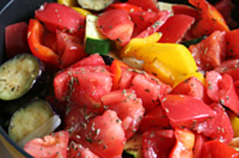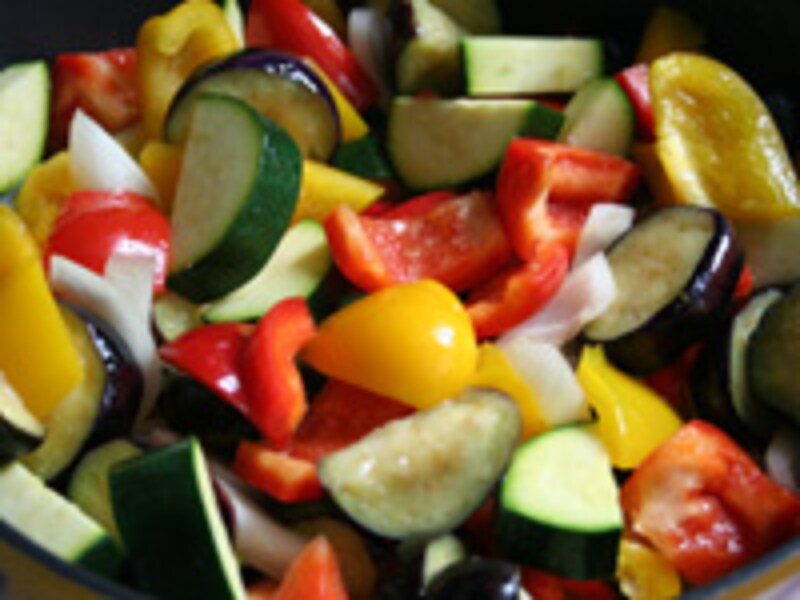 野菜はトマト、ナス、パプリカはあったほうがいいですが、その他はあるものをお好みで。