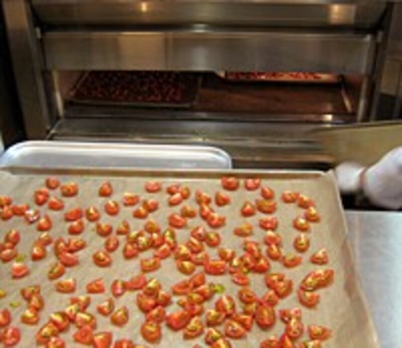 店内厨房で大量につくられるセミドライトマト(基本的にはこのつくりかた)は、「トマト&チーズ」の料理パンに、モツァレラチーズとともに贅沢に包まれているほか、デリで単品で買うことができます。手間がかかっている分、果実のように濃く甘酸っぱいトマトの味がします。