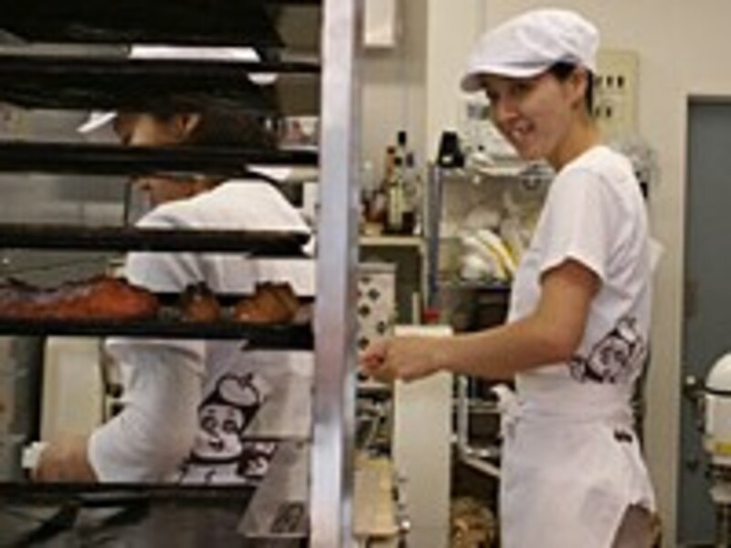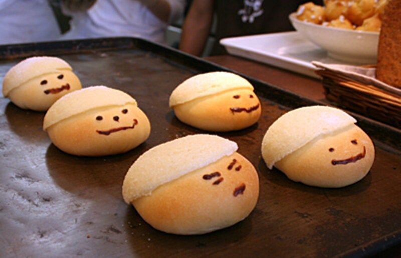 ショウケースを覗くとき、初めての人なら微笑まずにはいられない「カスタメロン」は自家製カスタードクリーム入りのメロンパン。「パン職人ならわかってしまうと思うんですけれど」と前置きして、大和さんはこのパンの生まれについて聞かせてくれました。パン生地にかぶせたクッキー生地がズルっとずれて失敗してしまったとき、そこに真さんが顔を描いてくれたのが始まりなのだとか。だから今でもチョコレートで顔を描くのは真さんの担当です。そして「ズレ具合」の角度はパン職人の祥子さんによって確定されました。かくして「カスタメロン」はこの店の人気商品のひとつになったのです。バニラビーンズの入った上質なカスタードもおいしいメロンパンです。