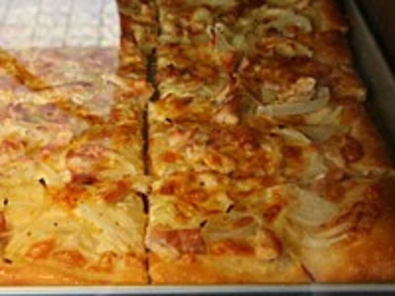 | ピザ(一切れ200円) | 作業着のTシャツにもバゲット君が。 |