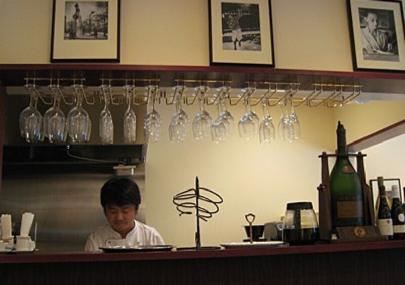 焼き鳥屋さんやラーメン屋さんなどが軒を連ねる、駅前の細い路地で、目新しいランチの看板を見かけ、ちょっとお店の様子を覗くと、どこかで見たようなパンが並んでいます。あれ?っと思って振り返ると、カウンターの中のシェフと目が合いました。
