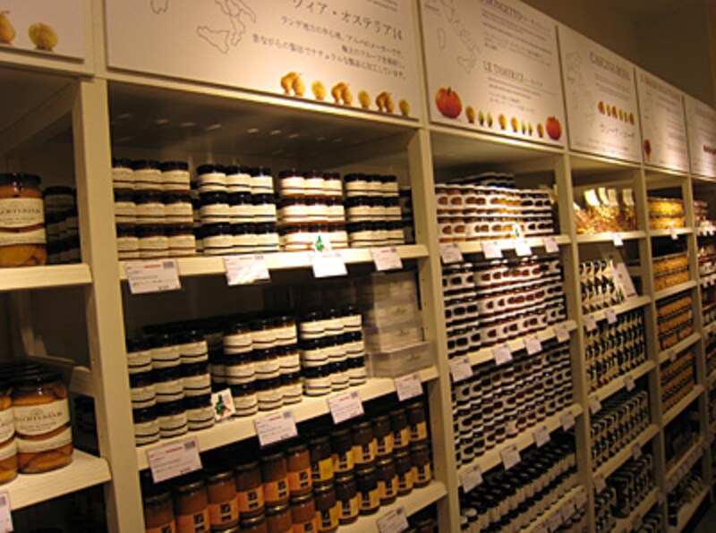 リグーリアの田園地帯で果物を自社栽培するダル・ピアン(オーソドックスなものから、季節の名前のついたミックスジャムなど、どんな味がするのかな?と思う魅力的な瓶詰めがたくさん!)、ランゲ地方アルバの、昔ながらの製法でフルーツを加工するヴィア・オステリア14、その他オーガニックフルーツの生産者などによる瓶詰めです。