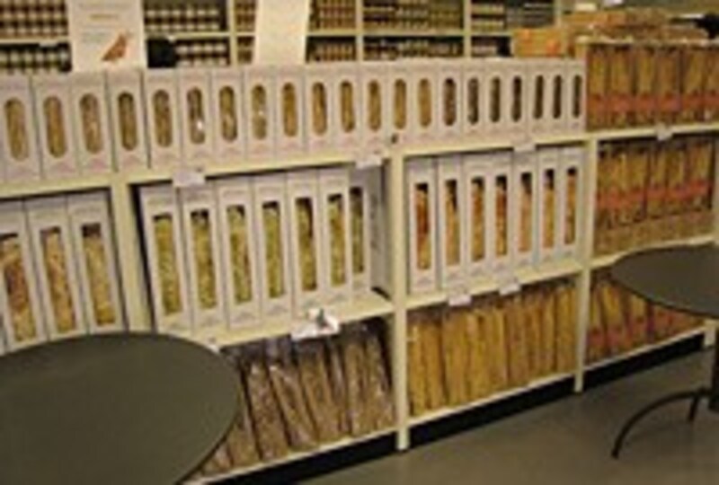 | パスタのショウケース | ペーストなど、さまざまな瓶詰め |