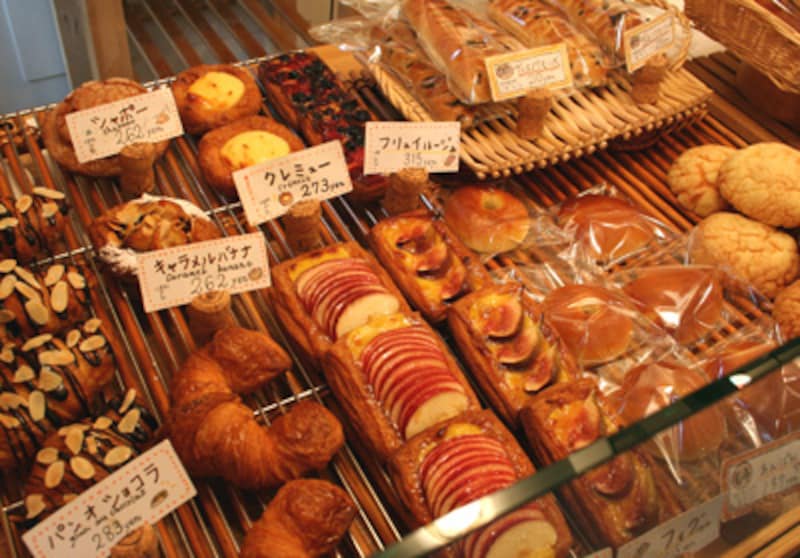 カスタードの上に季節の果物を載せたデニッシュは美しく、デザートにもなりそうです。「シャポー」はマジパンを練りこんだシナモンロールにマカロンをのせて焼いています。