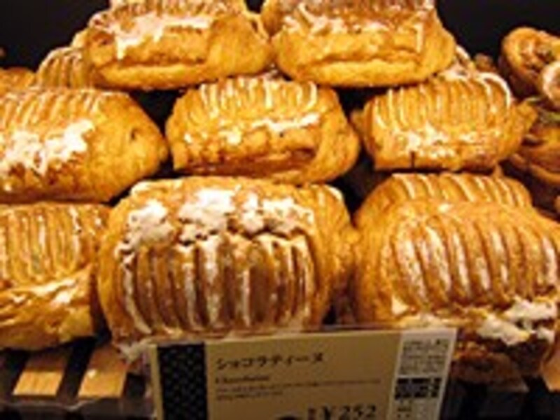 | シナモンシュガーを巻き込んだペストリー、エスカルゴ・カネル(242円) | 仏産小麦で作ったビターチョコのクロワッサン、ショコラティーヌ(252円) |