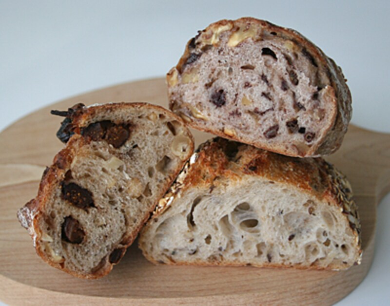 レーズンとクルミの「ノワエレザン」も、甘味とコクがあります。薄めにスライスしてクリームチーズやブルーチーズ、ドライばかりでなくリンゴやバナナなどのフレッシュフルーツとも合います。