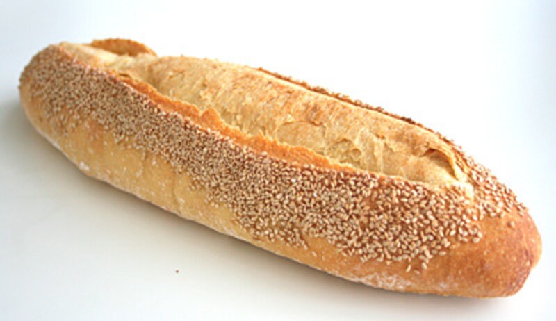 皮がバリッとして、普通のバゲットに近い食感。たっぷりついたごまがなんとも香ばしいパンです。食べていくうちに粉の美味しさ……(と、ひとことでは言えません。吸水や発酵や焼成など、パンを決める複雑な要素のバランスがとれた美味しさなのです)に感動します。合わせるのはバターでもオリーブオイルでも、トマトソースでもスープでも。幸せな相性を感じさせてくれること間違いなしのパンです。