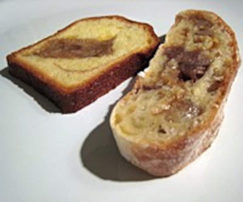 | 栗とメープルのチャバタ(上)、ブリオッシュのテリーヌ風(右下) |