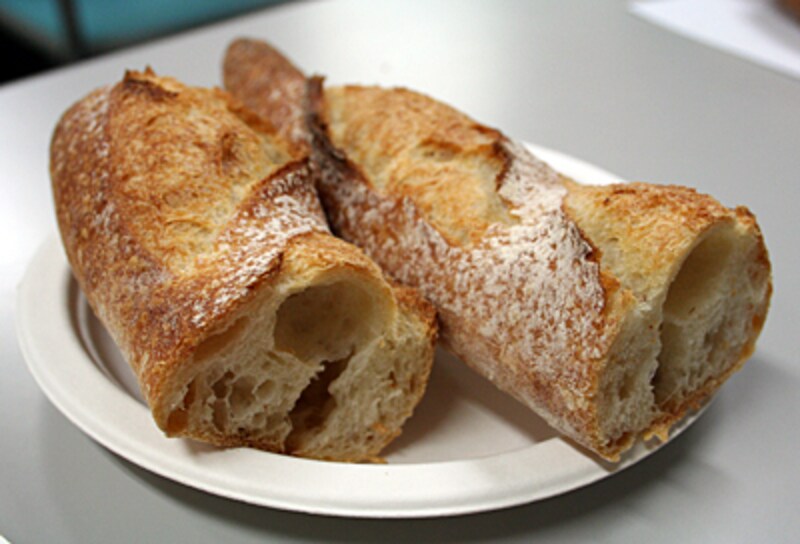 ベッカライ ブロートハイムのバゲットは4本の中で一番長く「皮と口どけの良さが好き」という渡邉さん一番のお気に入り。香ばしくパリパリした皮が軽く、たくさん食べられる感じ。あっさりした野菜のおかず、例えばこの後で野菜ソムリエによって紹介されるサラダとも相性が良いパンでした。