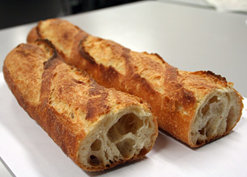 | ベッカライ ブロートハイムのバゲット320円。フランスパン専用粉リスドオル、ドライイースト、水、塩で約6時間で出来上がる基本的なバゲット。 |