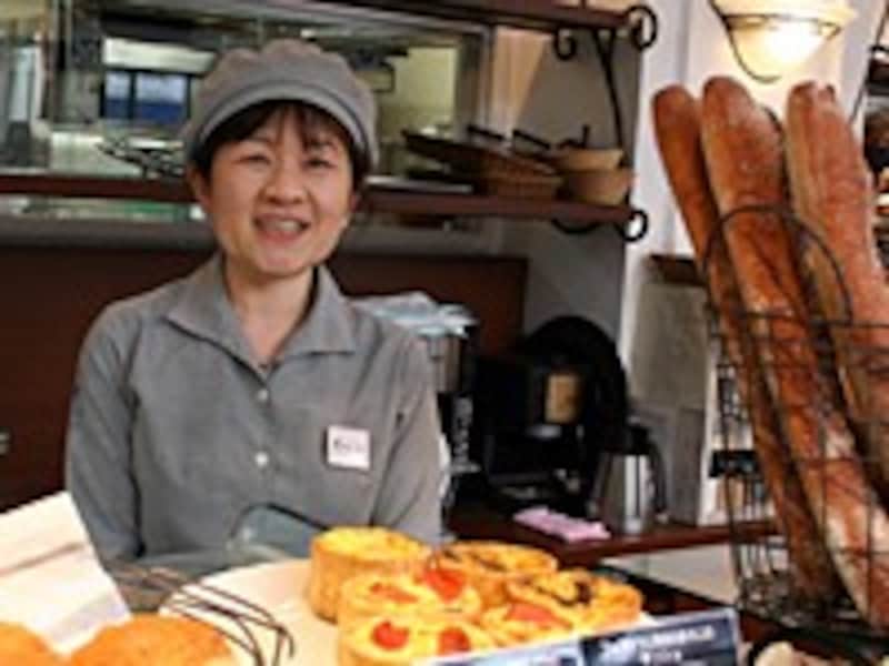 素材や食べ方など、パンを選ぶときにサポートしてくれるのは店長の筑井さんやスタッフの方々。「料理との相性などの質問をいただくと、待ってました!とばかりに、うれしくなってしまいます」と笑顔の筑井さん。店内には9席のイートインスペースがあり、その場でパンを愉しむことができます。