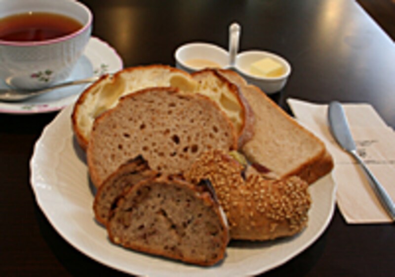 ゴボウがたっぷりとのった「インカの目覚めのタルティーヌ」にはバルサミコ酢が、国産トマトのタルティーヌにはアンチョビが隠し味になっていたりと、センスが感じられる料理パンが一番おすすめですが、いろいろ味見してみたい人には「本日のパンセット」がお得です。オーガニックバターとジャム(この日は熊本県阿蘇ジャージー牛乳のミルクコンフィチュール)や、飲みものがつきます。飲みものは化学農薬を使用していない茶葉を使った和紅茶(月ヶ瀬)や、フェアトレード有機JAS認定取得のコーヒーなどから選べます。