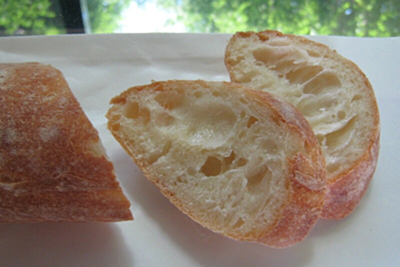 クラスト(皮)が薄くて柔らかいのが好きな人はこのパン、バリっとハードなのが好きな人は普通のバゲットをおすすめします。