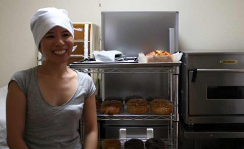ベーグルを焼いているのは角谷奈名子さん。 パン好きが高じて自分でも作るようになり、LE CORDON BLUE東京校パン課程終了後、数店のさまざまなタイプのベーカリーで製造に携わった後、パンの中では特殊な存在ゆえに開拓の余地がある、と思ったベーグルに焦点を絞り、より本格的に追究するためにアメリカはニューヨークへと旅立ちました。ニューヨークでは今まで奈名子さんが知っていたものと見た目も味も大きく違うベーグルが待っていました。残念ながら製造の現場に就業することはできなかったものの、見学を許され、製造スタッフからアドバイスをもらうこともできたので、帰国後に粉の配合、発酵、焼き方を何通りか試してオリジナルベーグルを完成。店の運営全般を担当するお姉さんの映衣子さんとともに、この夏、ウェブショップをオープンしたのです。