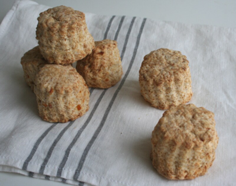 全粒粉の香ばしさとほのかな甘味のあるスコンは、サクサクの層がおいしい型抜きタイプ。国産小麦粉、国産全粒粉、発酵バター、洗双糖、塩、牛乳、ベーキングパウダー(アルミニウム不使用)で作られています。甘夏ピールも自家製です。