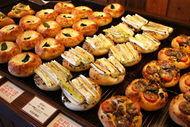 発酵クリームとバジル、白胡椒、エダムチーズの「フォカッチャノルマンディー」、長ネギ、自家製オリーブペースト、エダムチーズの「ポワロー」など、どこか白っぽい雰囲気が冬の季節によく合います。こうした 料理パンが並び始めると、店内のお客さんたちは皆、次は何が出てくるのかと注目します。