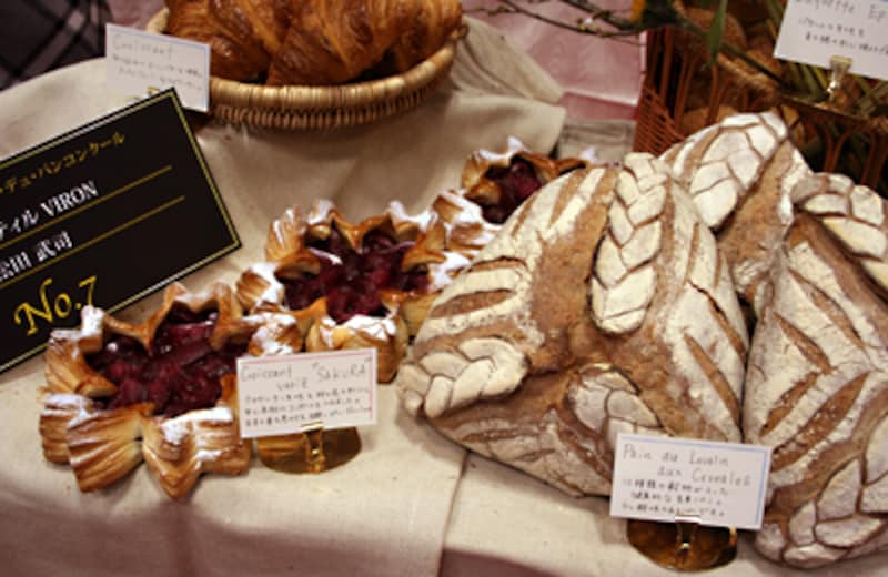 | クロワッサンバリエーションの「SAKURA」と10種の穀物の入った「パン・オ・ルヴァン・オ・セレアル」 |