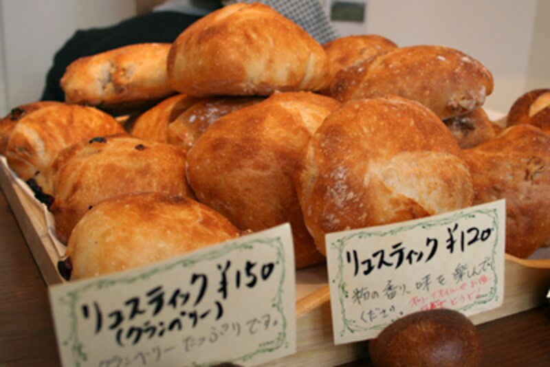 「大納言」と並ぶ人気は「リュスティック」です。生地に20%のクランベリーやクルミを入れたものもあります。生地に含まれる水分量が多く、もちもちしているのが特徴です。 大熊さんのおすすめは、プレーンのリュスティックに有塩の冷たいバターをのせて食べること。リュスティック生地の味わいがストレートに楽しめます。先日、お客さんから1本の電話がかかってきたそうです。それは「引越してしまうので今までのように買いに来れなくなるけれど、リュスティックがおいしくて大好きだった」というご挨拶だったそうです。棚には予約のパンが取り置きされているし、一日に二度顔を見せるお客さんもいると聞けば、この、小さくても職人のいる本格パン屋さんが、早くも地域の人たちの日常に必要な存在となっていることが伺えるのでした。