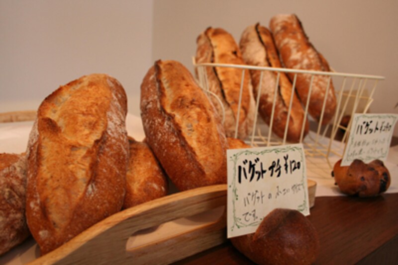 Bakery kumaのバゲットは、どちらかというとバタールのように太めの形なので、普通に切っても、中身がたっぷり味わえます。もう一つの特徴は全粒粉。 この店のパンの生地には全粒粉を配合しているものが多く、バゲットには5%、クロワッサンやデニッシュには10%入っています。全粒粉はパンを香ばしく、味わい深くしています。![]() |