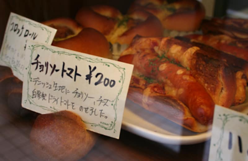 販売スタッフの方のおすすめは、「チョリソートマト」。全粒粉の入ったザクっとしたデニッシュ生地にピリ辛ソーセージ、自家製のドライトマト、チーズが挟んであり、食べ応え十分でランチにおすすめです。