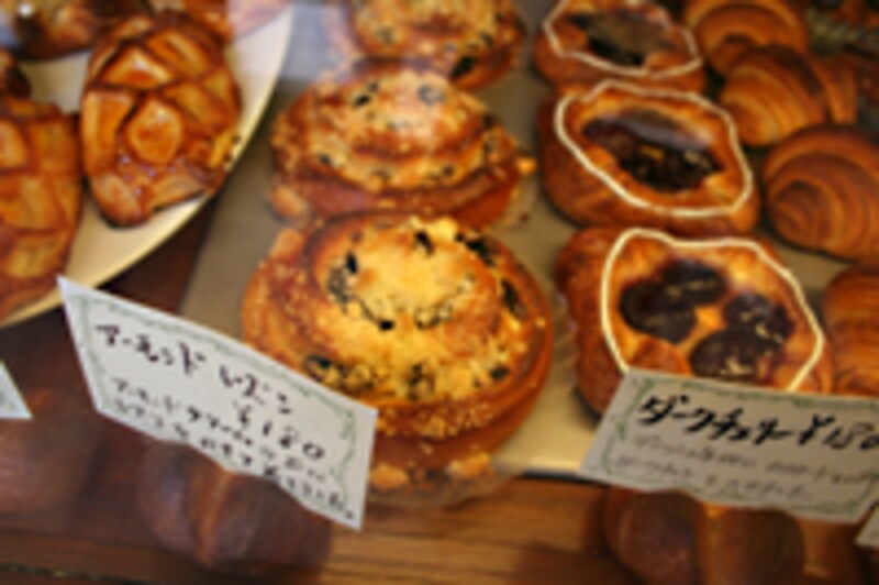 あんぱんは自家製の餡を包んでいます。大熊さんが銅鍋で炊いた小豆は甘さ控えめで、豆本来の味を楽しませてくれます。チョココロネも、自家製のカスタードにカカオ58%のチョコレートを使い、やさしい甘さに仕上がっています。