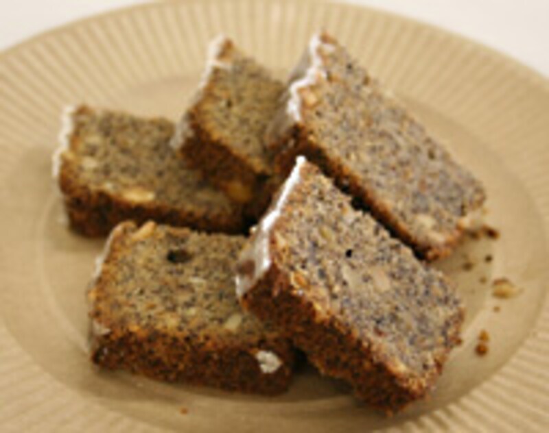 セミナーの終わりの頃に、バターの香りがしっかりとあるパイのようなクロアソンが焼きあがりました。もうひとつ、パン屋さんならではの焼き菓子、「モーンクーヘン」も紹介されました。ブルーポピーシードとナッツがたっぷりの焼き菓子で、生地にクロアソンのクラムが入っているのが特徴です。練りこまれたモーンバックマッセ(ポピーシードの餡のようなもの)のレシピは門外不出なのだそうです。
