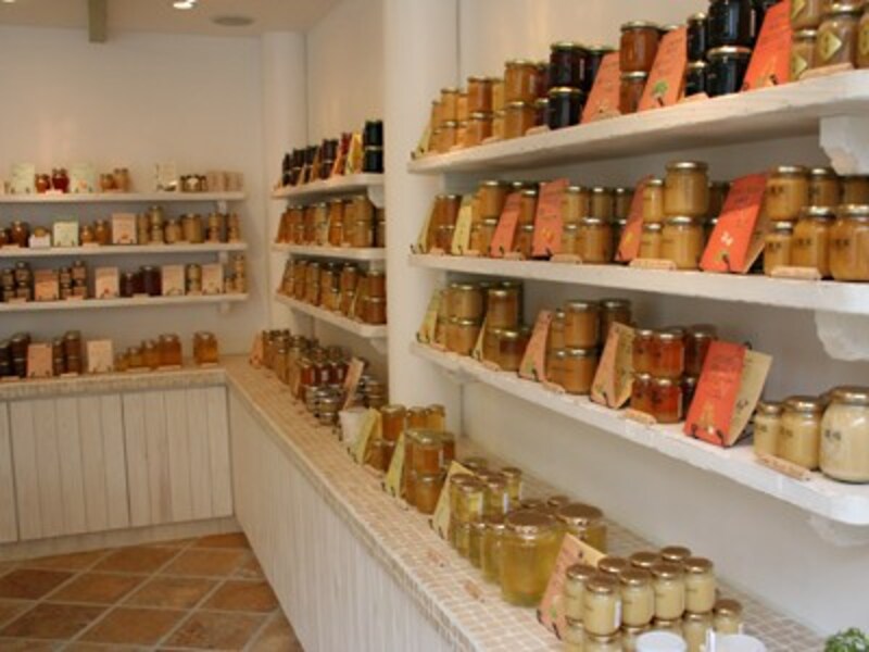 | さまざまなはちみつと関連商品が並ぶ |