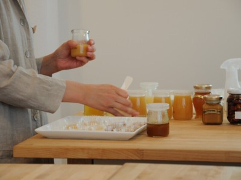 ラベイユに新設されたアトリエでは、このようなはちみつとパンのおいしい組合せについてのヒントを学べるセミナーや、はちみつを使った料理教室が開催されています。