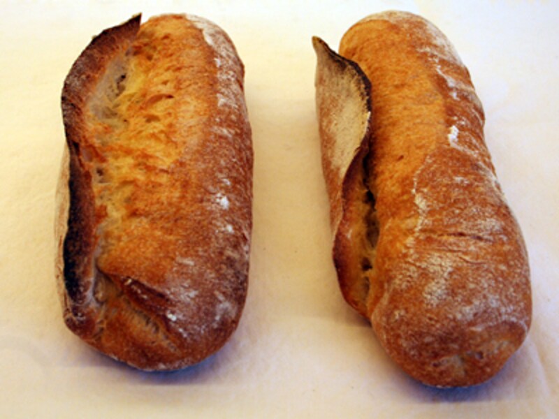 ライ麦から起こした酵母種で発酵に時間をかけて焼いた「バゲット ルヴァン」はしっとりとして、ほのかな酸味もあります。ワインやチーズのあるテーブルにのせたい、味わい深いバゲットです。