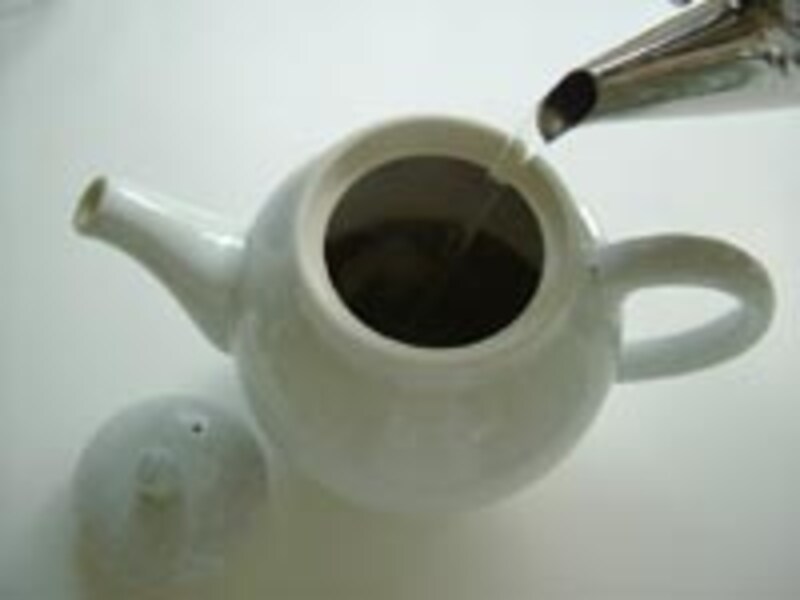 ◆2◆ 温めたポットに茶葉をいれ、沸騰直後の熱湯を注ぎ4分蒸らす。茶葉をこしてから熱いうちにグラニュー糖を入れ溶かして冷ましておく。 |